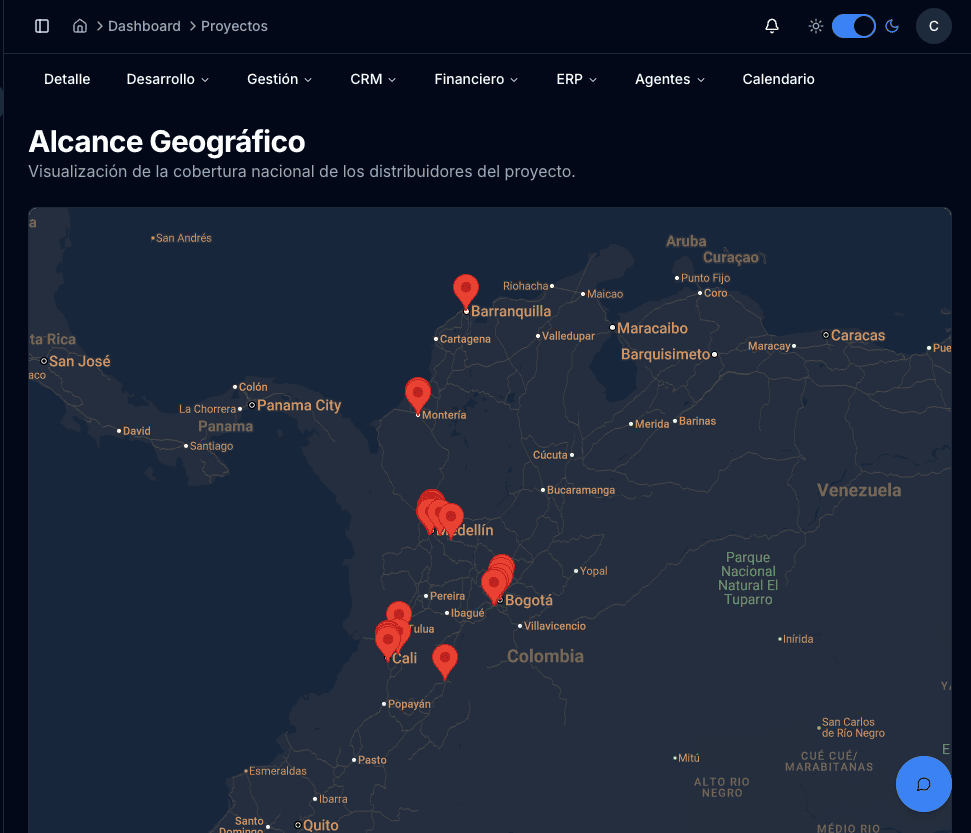 A diferencia de otros, no solo te damos un bot. Te entregamos un ecosistema completo para gestionar tu negocio: ERP integrado con geolocalización, puntos de venta, distribuidores y conexión real con tu sistema de agentes.